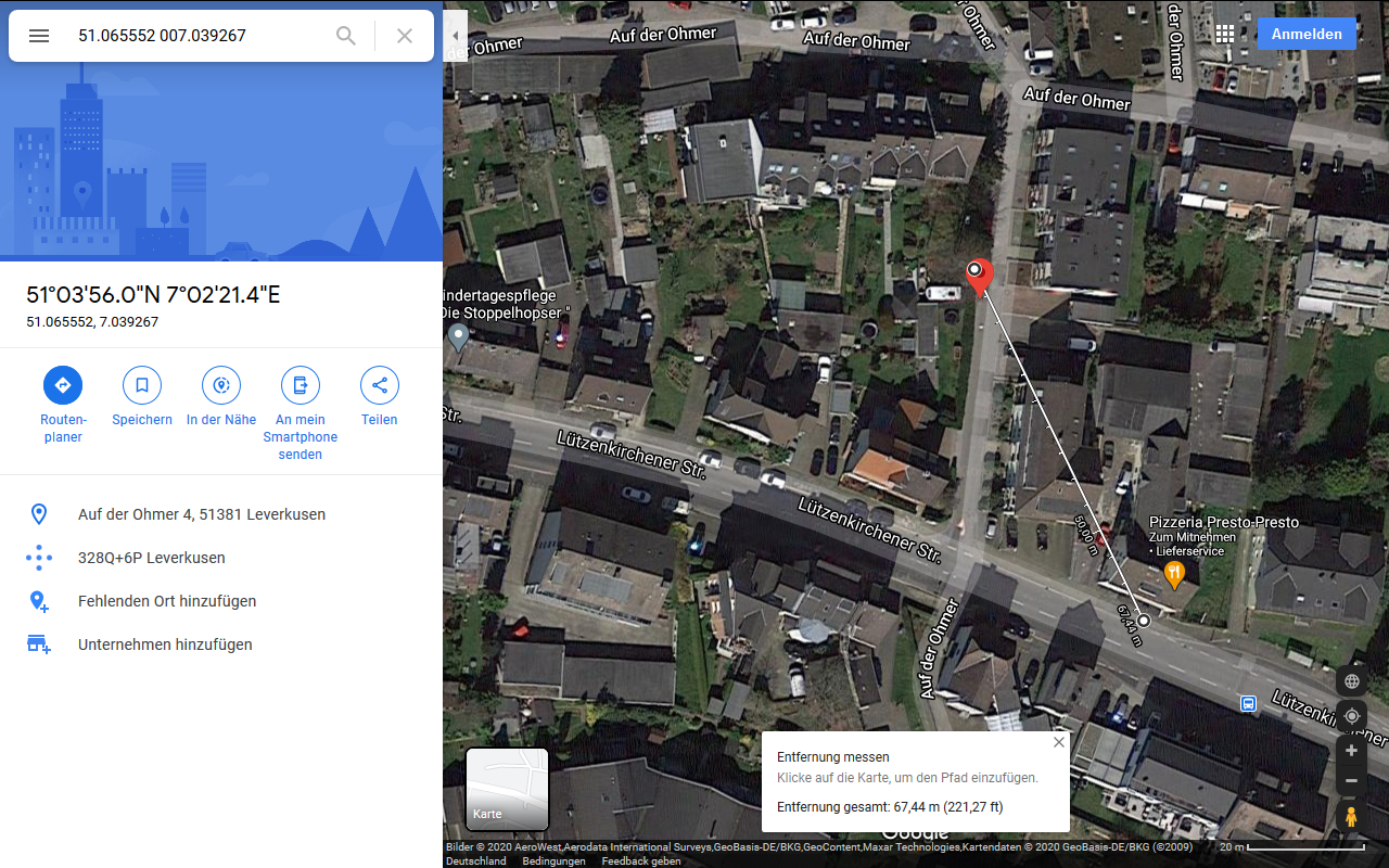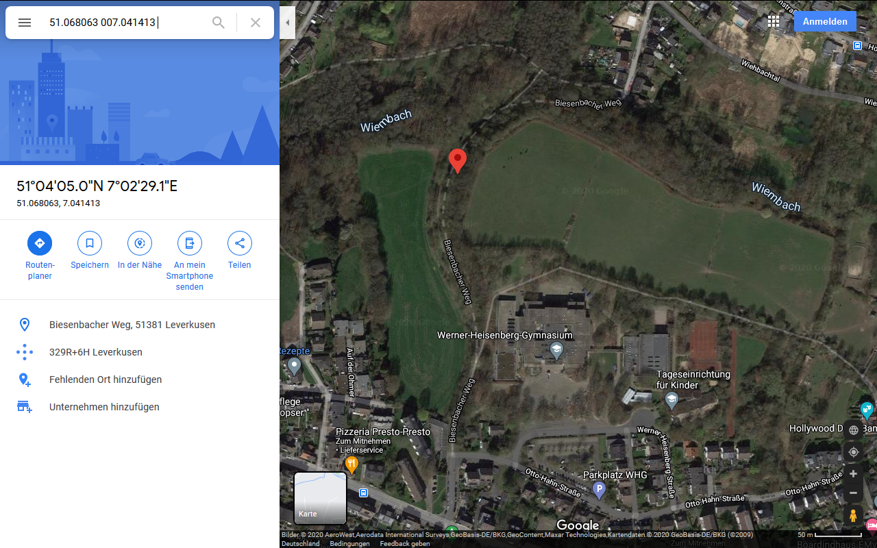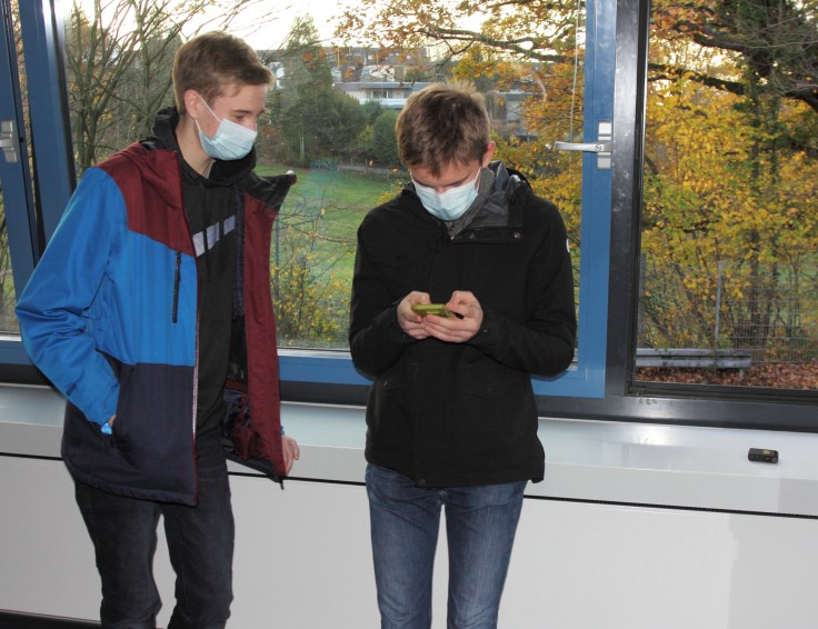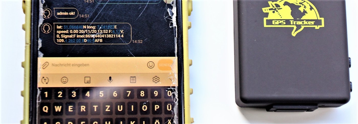 Dafür mussten wir ihn einschalten und ins Freie legen, um Kontakt zu den Satelliten aufbauen zu können. Durch das Senden einer SMS an die Nummer der SIM-Karte haben wir einen Admin erstellt. Für die Sicherheit musste man dabei ein Passwort festlegen, welches bei jeder folgenden Aktion mit übergeben werden muss. Zum Testen des GPS-Trackers haben wir zwei Schüler mit diesem losgeschickt, um sie dann mit dem Smartphone wieder zu finden. Dafür muss man vom Smartphone aus eine SMS oder einen Anruf tätigen, woraufhin man eine SMS mit den Koordinaten und einem Link zu Google Maps gesendet bekommt. Beim ersten Versuch stellten wir fest, dass die Angaben um etwa 90 Meter abwichen.